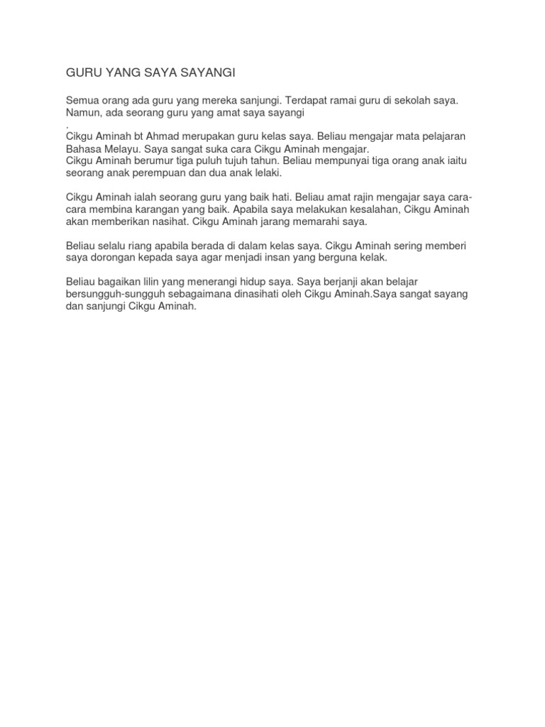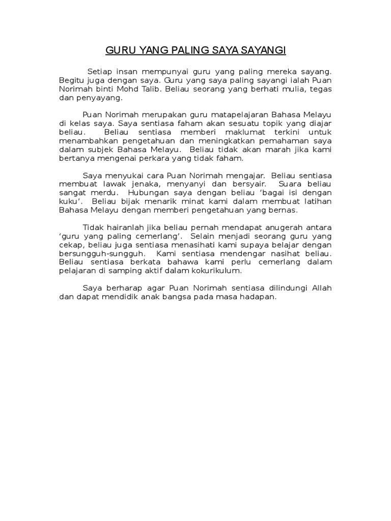 Contoh Karangan Guru Yang Saya Sayangi